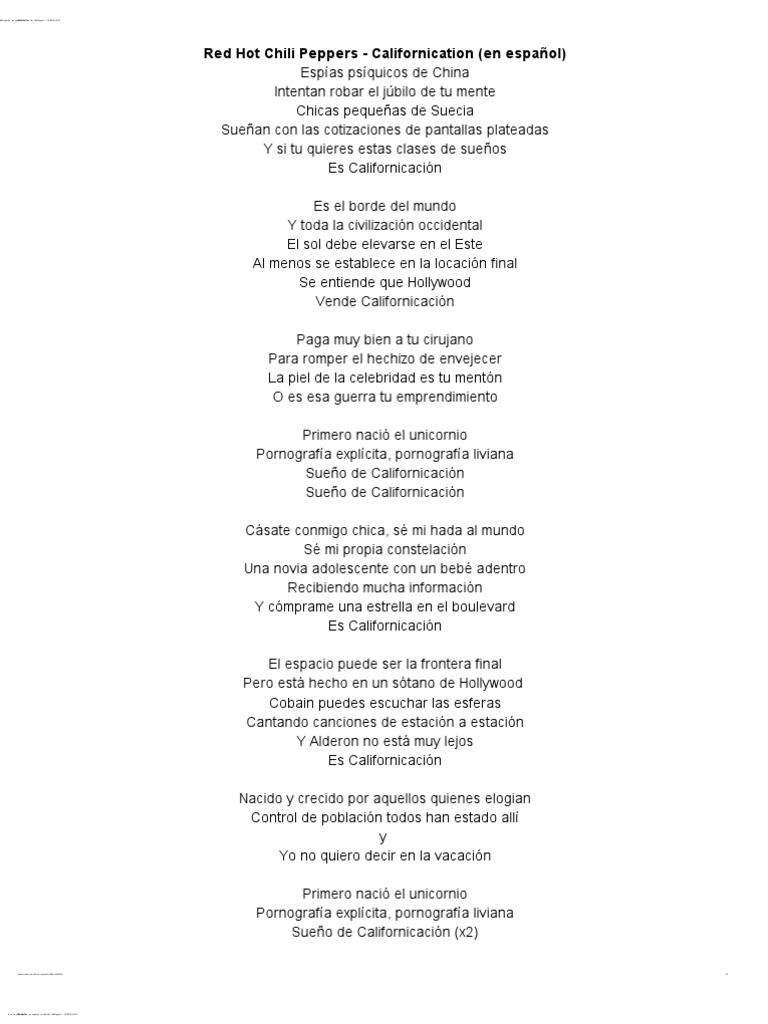Letra De Californication En Espanol De Red Hot Chili Peppers Musica